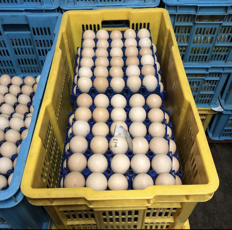 集められた卵は細菌などを死滅させるため、必ずすべて消毒します。(この作業を燻蒸といいます。)